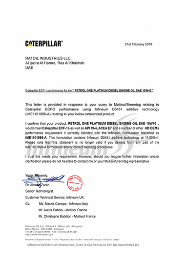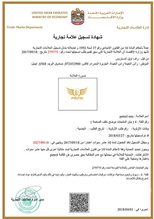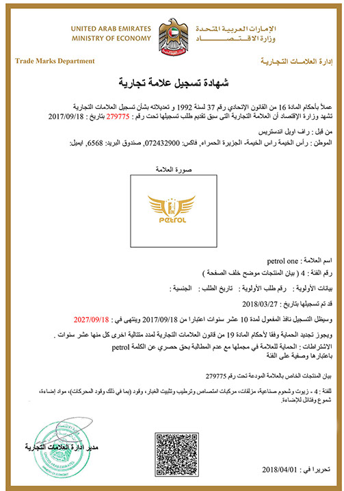 RAF OIL INDUSTRIES LLC于2013年在迪拜成立,同时向全球各地供应不同型号的润滑油、OEM代工及各种类别的基础油。 PETROL ONE (比特王)为本司主打品牌,旗下产品有:车用润滑油、工业润滑油、摩托车润滑油等。本品牌目前在全球已有53个国家在销售,大约分布在:澳大利亚、加拿大、美国、秘鲁、智利、巴西、埃及、利比亚、约旦、沙特、阿联酋、也门、阿曼、越南、印度、印尼、缅甸及欧洲部份地区。r institutions meeting the customers demands.